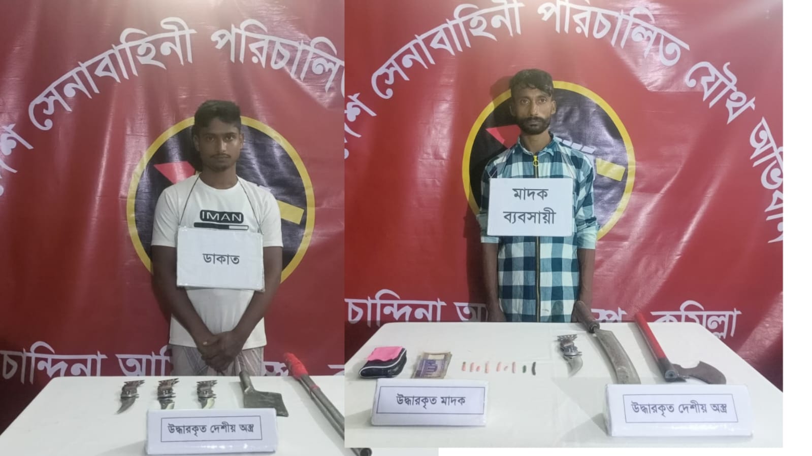 চান্দিনায় সেনাবাহিনীর পৃথক অভিযানে অস্ত্র, মাদক ও নগদ টাকা সহ আটক ২