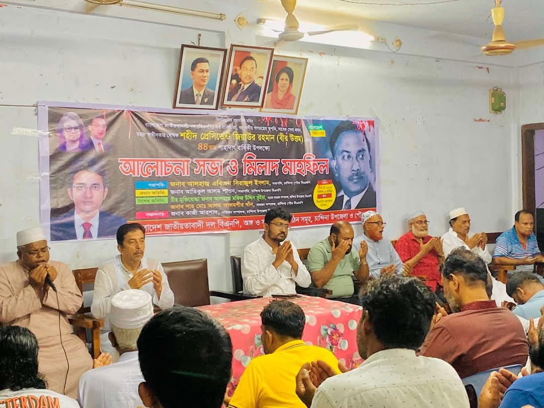 চান্দিনায় জিয়াউর রহমানের ৪৪তম শাহাদাত বার্ষিকী উপলক্ষে বিএনপির আলোচনা সভা ও দোয়া মাহফিল