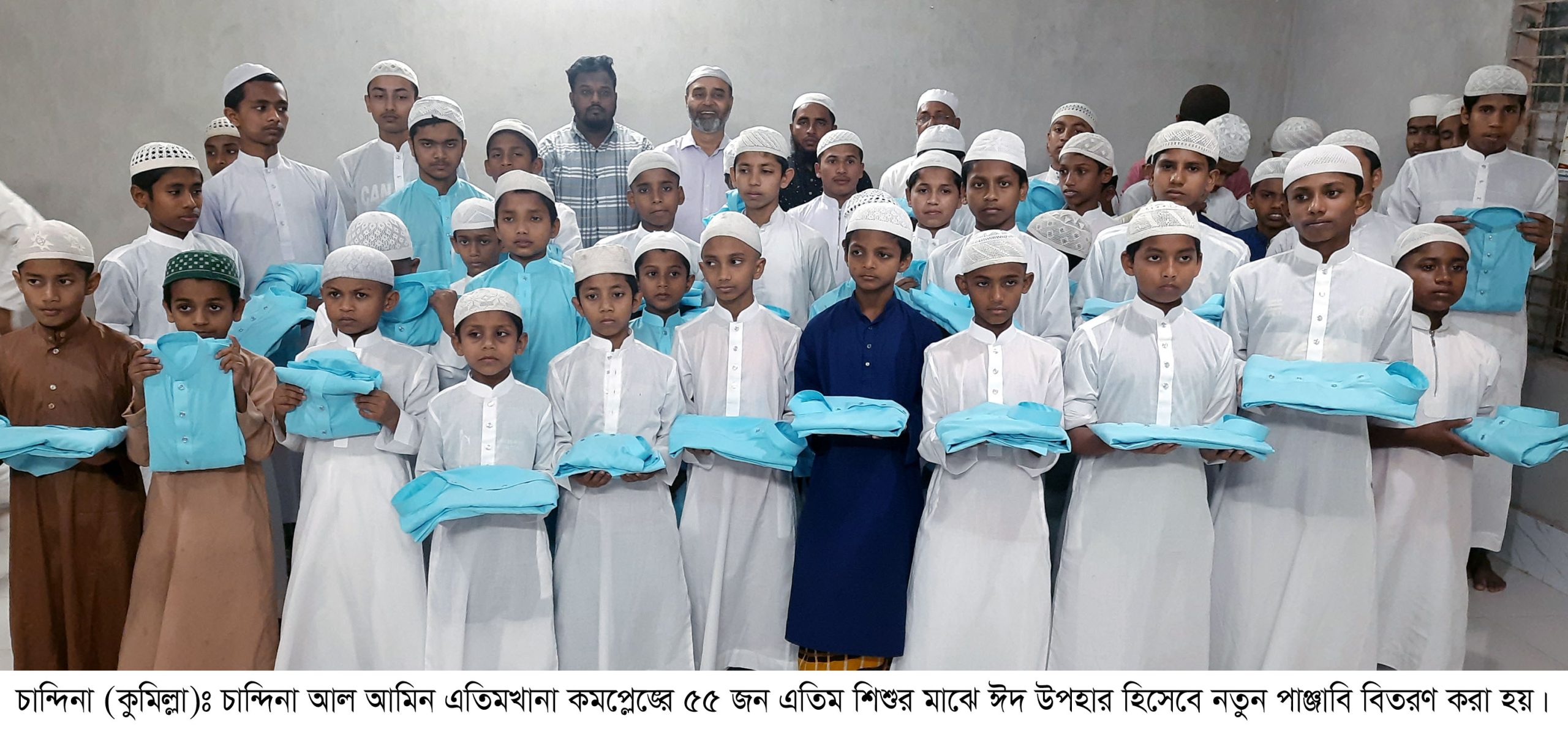 চান্দিনা (কুমিল্লা) প্রতিনিধি: কুমিল্লার চান্দিনা আল আমিন এতিমখানা কমপ্লেক্সের ৫৫ জন এতিম শিশুর মাঝে ঈদ উপহার হিসেবে নতুন পাঞ্জাবি বিতরণ
