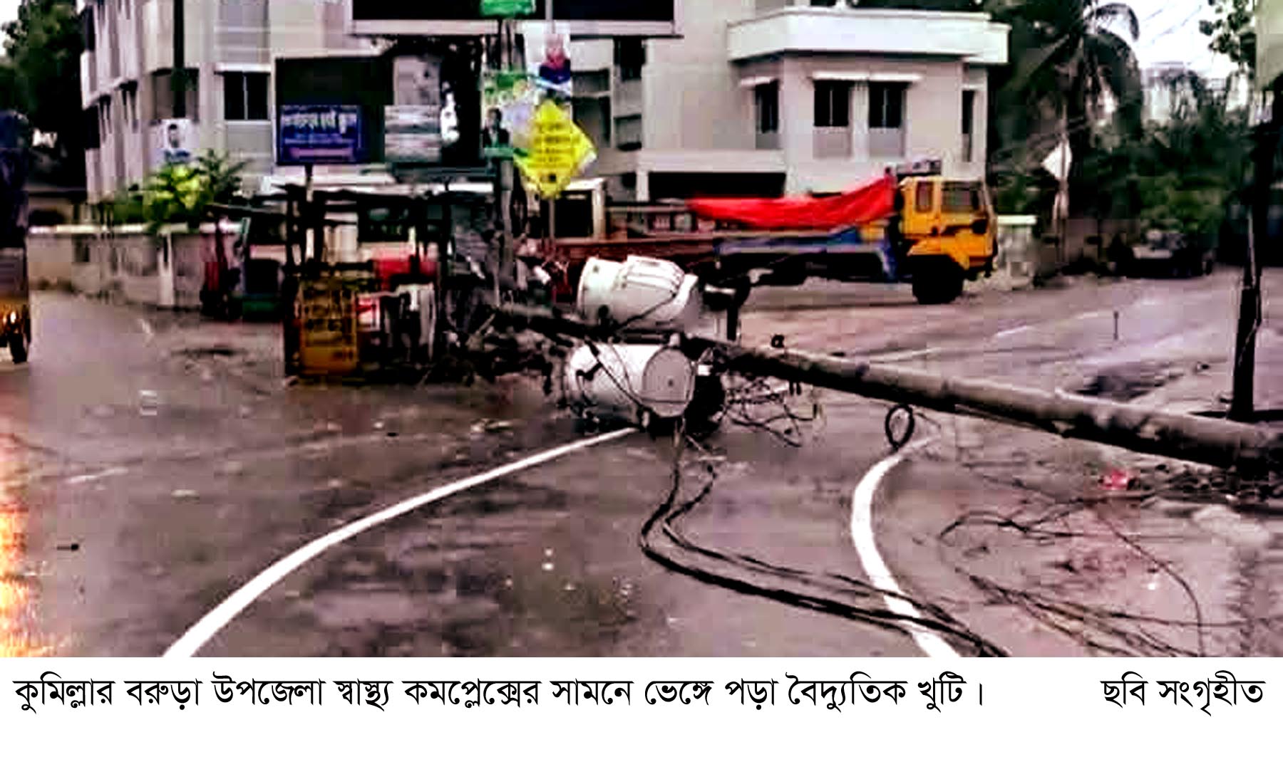 কুমিল্লার ১৭ উপজেলায় ঘুর্ণিঝড়ে বৈদ্যুতিক লাইনের আড়াই কোটি টাকার ক্ষয়ক্ষতি, খুটি ভেঙ্গেছে ৮৪টি, ট্রান্সফরমার বিকল ৬২টি