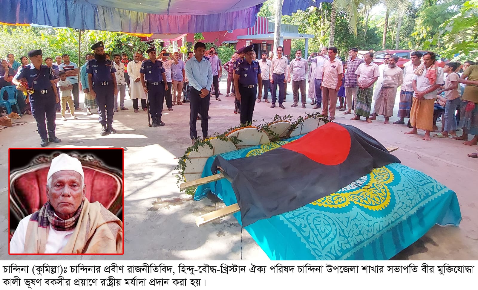 চান্দিনায় বীর মুক্তিযোদ্ধা কালী ভূষণ বকসী আর নেই; রাষ্ট্রীয় মর্যাদায় শেষ বিদায়