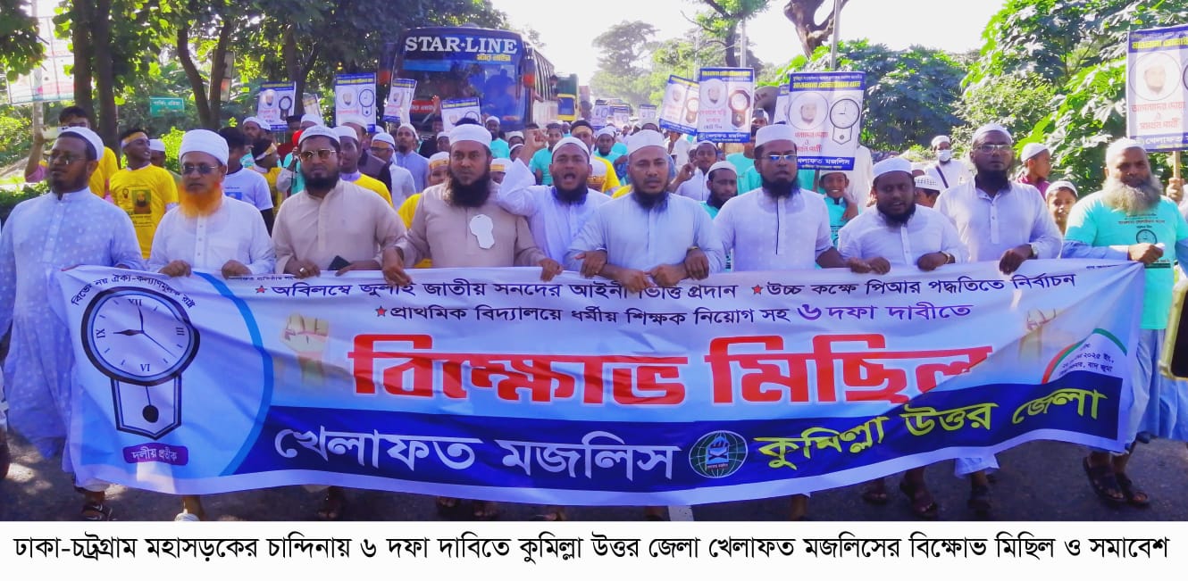 ৬ দফা দাবিতে কুমিল্লা উত্তর জেলা খেলাফত মজলিসের বিক্ষোভ মিছিল