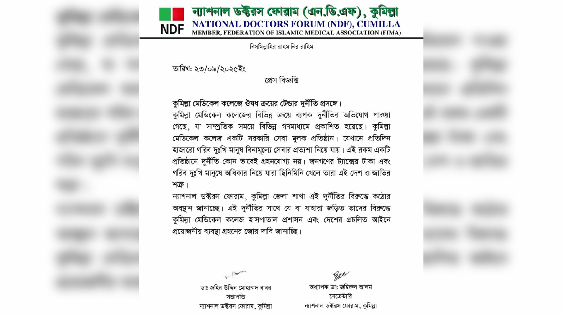 অনলাইন ডেস্ক: দেশের অন্যতম গুরুত্বপূর্ণ চিকিৎসা প্রতিষ্ঠান কুমিল্লা মেডিকেল কলেজ হাসপাতালে ওষুধ কেনা ও টেন্ডার প্রক্রিয়ায় ভয়াবহ দুর্নীতি ও অনিয়মের