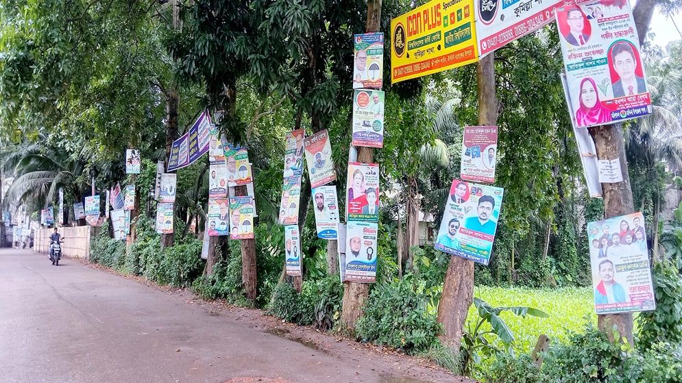 অনলাইন ডেস্ক: কুমিল্লার চান্দিনা উপজেলায় প্রতিটি সড়ক যেন এখন একেকটি অবৈধ বিজ্ঞাপন কেন্দ্র। সড়কের দুই পাশে সারি সারি গাছের গায়ে