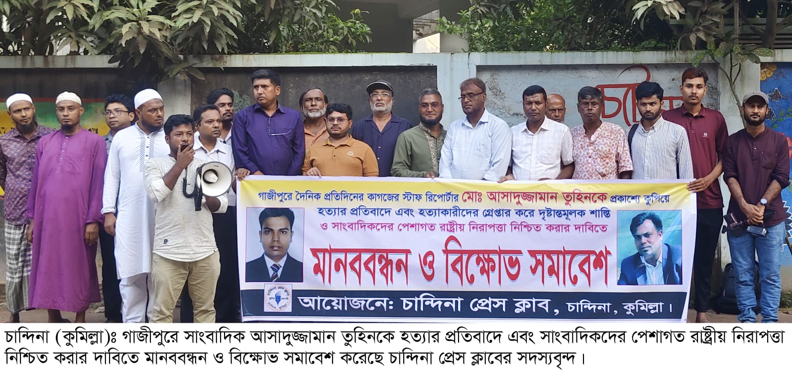 গাজীপুরে সাংবাদিক তুহিন হত্যার প্রতিবাদে চান্দিনা প্রেস ক্লাবের মানববন্ধন