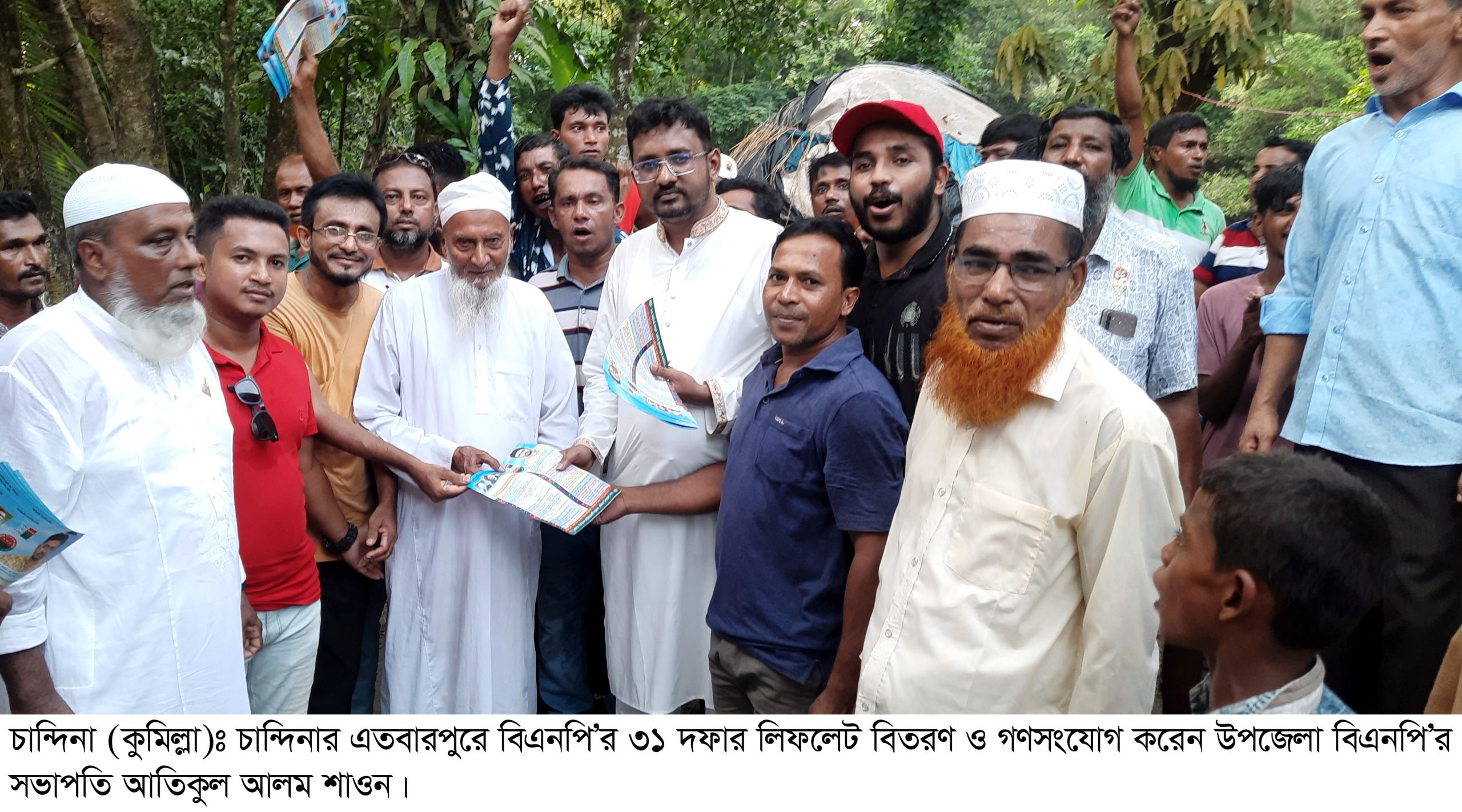 চান্দিনায় বিএনপি’র ৩১ দফার লিফলেট বিতরণ