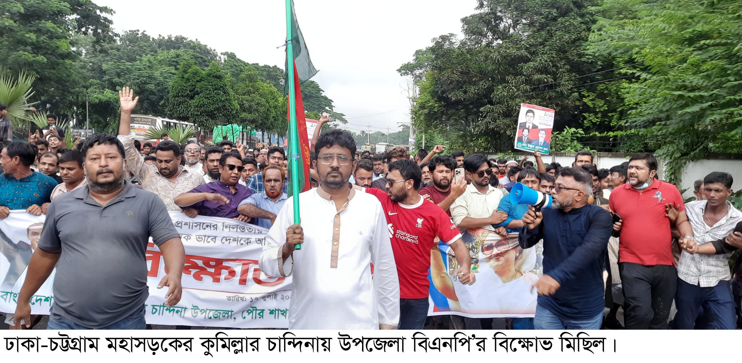 সারাদেশে প্রশাসনের নির্লিপ্ততা ও আইন-শৃঙ্খলার অবনতির প্রতিবাদে চান্দিনা উপজেলা বিএনপি’র বিক্ষোভ মিছিল