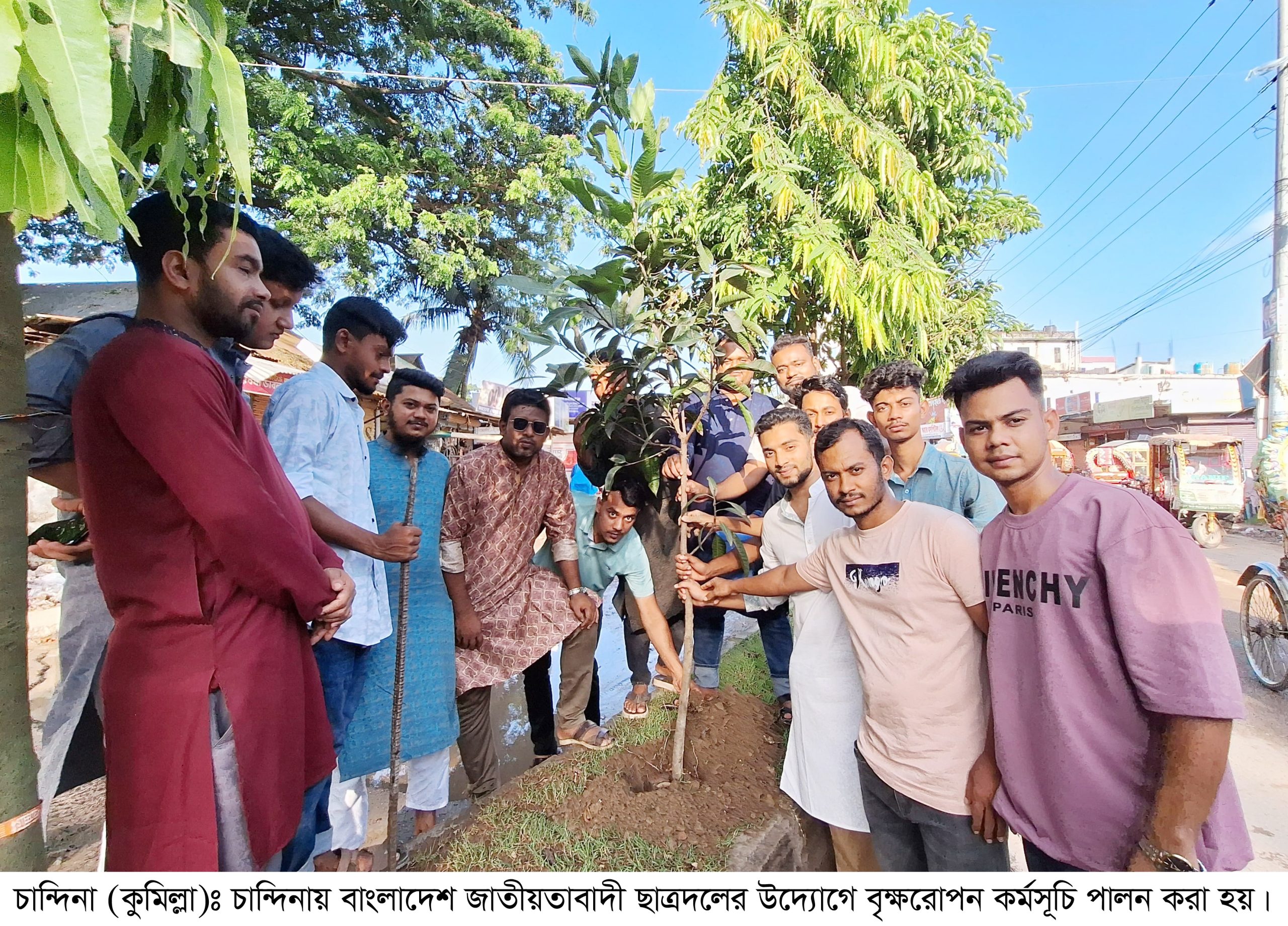 আবু সাঈদঃ কুমিল্লার চান্দিনায় বাংলাদেশ জাতীয়তাবাদী ছাত্রদলের উদ্যোগে বৃক্ষরোপন কর্মসূচি পালন করা হয়। সবুজ বাংলাদেশ গড়ার প্রত্যয়ে ও পরিবেশ রক্ষায়