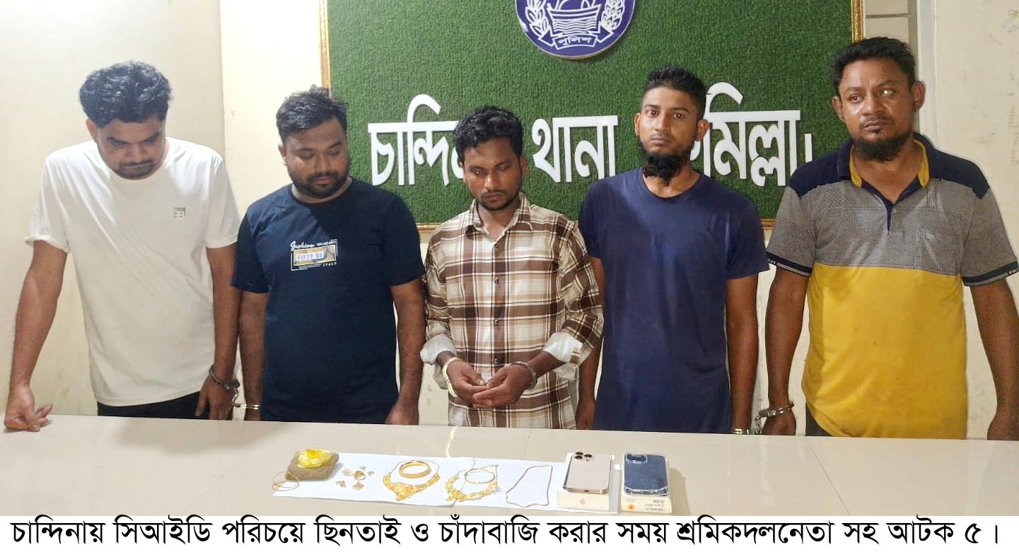 সিআইডি পরিচয়ে প্রবাসীর স্বর্ণালঙ্কার লুট চান্দিনায় চাঁদাবাজির ঘটনায় শ্রমিকদল নেতাসহ আটক ৫