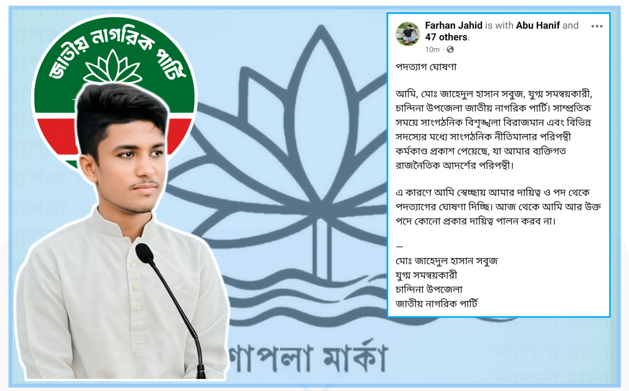 ফেসবুকে পোস্ট দিয়ে চান্দিনায় এনসিপি নেতার পদত্যাগ