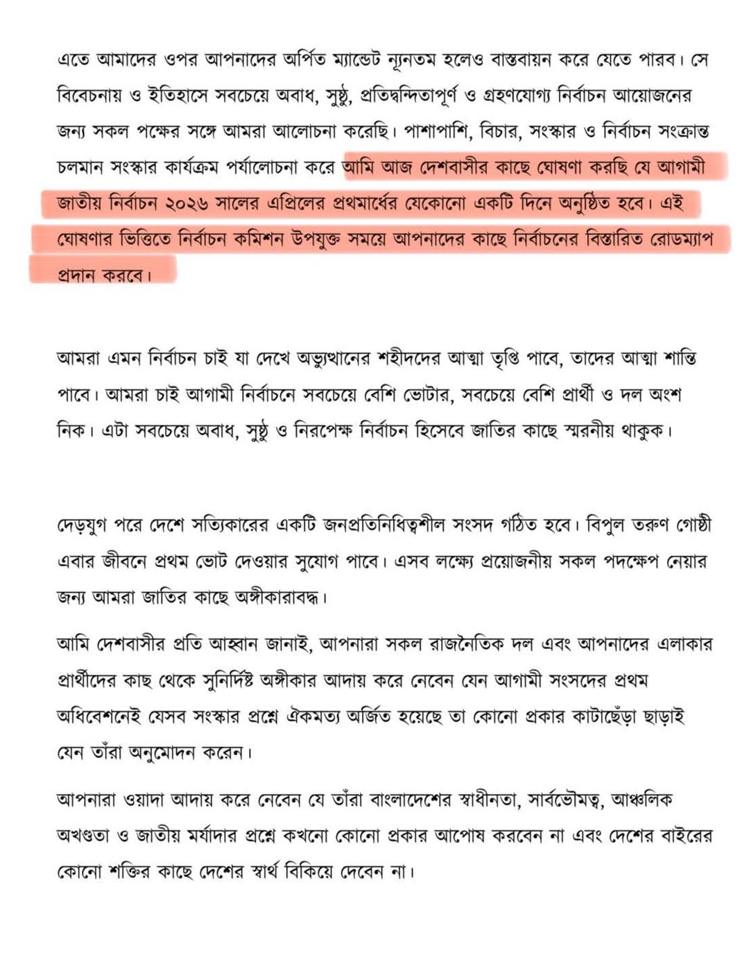 বিশেষ প্রতিনিধিঃ আগামী জাতীয় সংসদ নির্বাচন ২০২৬ সালের এপ্রিল মাসের প্রথমার্ধে অনুষ্ঠিত হবে বলে ঘোষণা দিয়েছেন প্রধান উপদেষ্টা ড. মুহাম্মদ